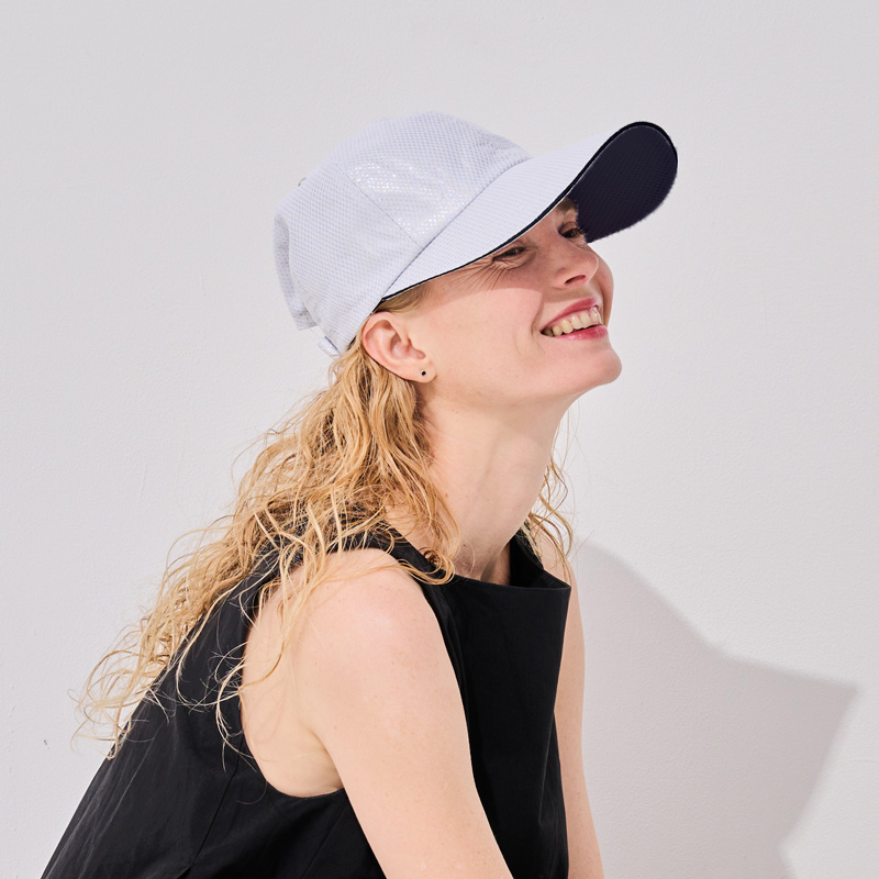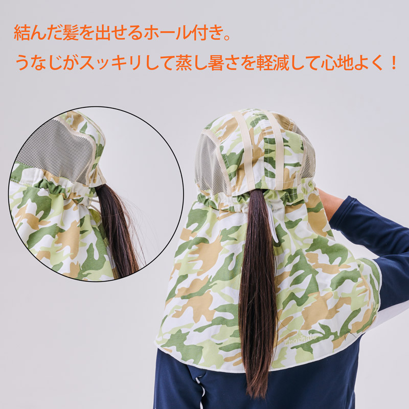 熱中症は体温調節がうまくできなくなることで発症するので、帽子で顔・首まわりをしっかりガードしながらも、通気性の良い帽子で頭部の熱を逃がすことが重要です。