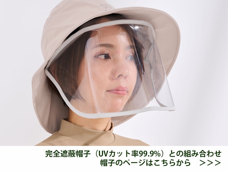 UVカット率99%以上の透明ビニールでできた、顔周り、耳周り、首まで守れるフェイスガード