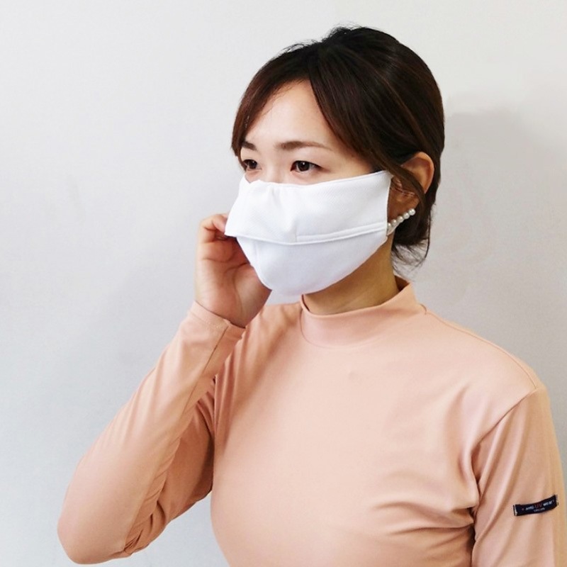 目の下から顎までをしっかりホールドするようデザインされたマスク