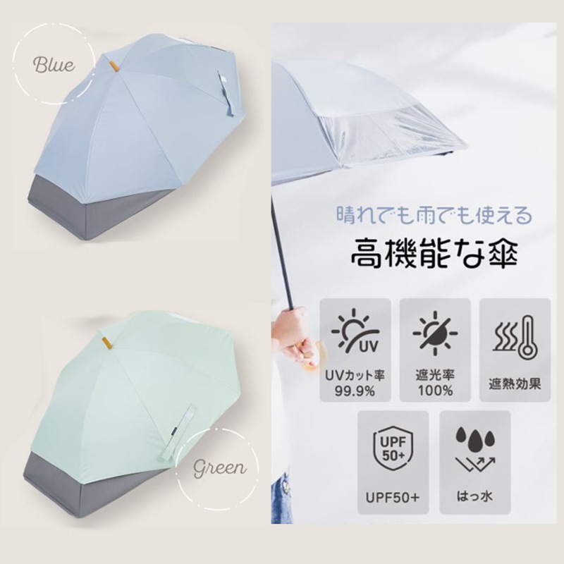 晴雨兼用、UVカット99%以上、遮光率100%(完全遮光)、 1級遮光、はっ水加工、遮熱効果、UPF50+ | |